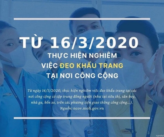 Từ 16/3, thực hiện nghiêm việc ĐEO KHẨU TRANG tại nơi công cộng (16/03/2020)