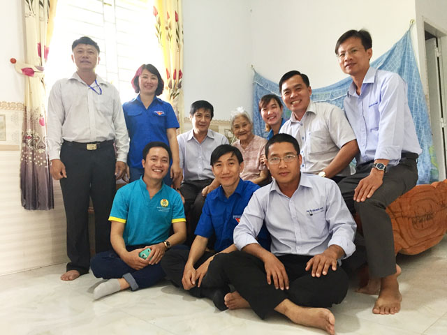 Đại diện Công đoàn - Đoàn Thanh niên Xí nghiệp Truyền dẫn nước sạch và đại diện Công đoàn Tổng Công ty chụp hình lưu niệm với mẹ Ký.