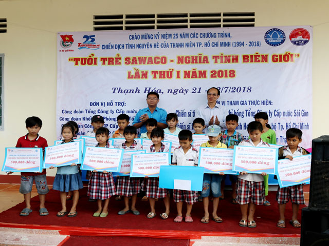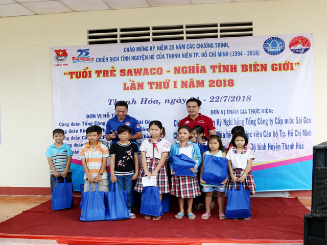 Ngày 21-22/07/2018, gần 50 Đoàn viên thanh niên các đơn vị trực thuộc Đoàn Tổng Công ty Cấp nước Sài Gòn đã tham gia chiến dịch tình nguyện Kỳ nghỉ hồng “Tuổi trẻ Sawaco - Nghĩa tình biên giới” tại xã Tân Hiệp, huyện Thạnh Hóa, tỉnh Long An.