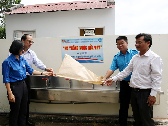 Nhằm thể hiện vai trò xung kích, tình nguyện của Đoàn viên thanh niên đối với cộng đồng, đặc biệt là đối với thế hệ mầm non của đất nước, Đoàn Tổng Công ty cấp nước Sài Gòn đã chủ động xây dựng kế hoạch và triển khai thực hiện các hoạt động tập trung tại trường tiểu học Tân Hiệp để cải thiện môi trường học tập, sinh hoạt cho các em học sinh như: trao tặng và lắp đặt bồn chức nước sạch (5000 lít) và hệ thống bồn rửa tay; cải thiện phòng nghỉ thành phòng sinh hoạt tập thể, nơi đọc sách…; sơn tường các phòng học, sửa chữa, đi lại hệ thống điện, đèn, quạt, trần nhà…, thay mới ảnh Bác, các bảng, biểu, rèm cửa trong các phòng học; sửa chữa và sơn mới bàn ghế; dọn vệ sinh toàn bộ khuôn viên trường và trồng thêm hoa một số khu vực… Bên cạnh đó; Đoàn Tổng Công ty còn trao tặng sách, vở cho các em từ Lớp 1 đến lớp 5 (khoảng 70 em); tặng 20 suất học bổng “Thắp sáng ước mơ” (500.000đ/suất) cho các em vượt khó học giỏi; trao tặng trống trường mới, tủ sách mới với một số sách tham khảo, truyện đọc...