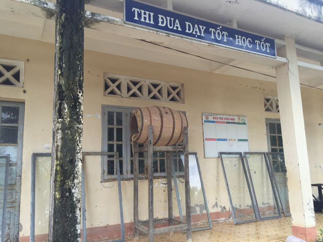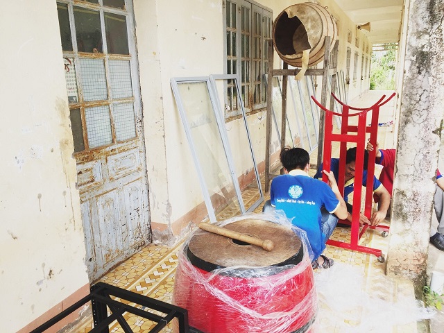 Trống trường đã bị rách nát nhưng vẫn chưa có điều kiện thay mới