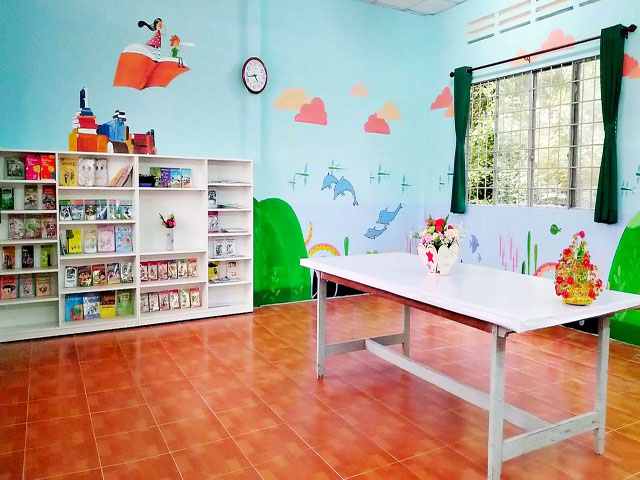 Phòng nghỉ sau khi được cải thiện thành phòng sinh hoạt tập thể, thư viện