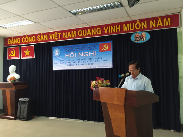 Ngày 31/10/2017, tại Xí nghiệp Truyền dẫn nước sạch, Ông Trần Đỗ Bảo Quế - Bí thư Chi bộ Xí nghiệp đã chủ trì Hội nghị sơ kết kết quả hoạt động Chi bộ giữa nhiệm kỳ (2015-2020). Hội nghị đã diễn ra trong không khí trang trọng, nghiêm túc với sự tham dự của Ông Trần Văn Khuyên - Bí thư Đảng ủy Tổng Công ty cùng 28 Đảng viên thuộc Chi bộ Xí nghiệp.