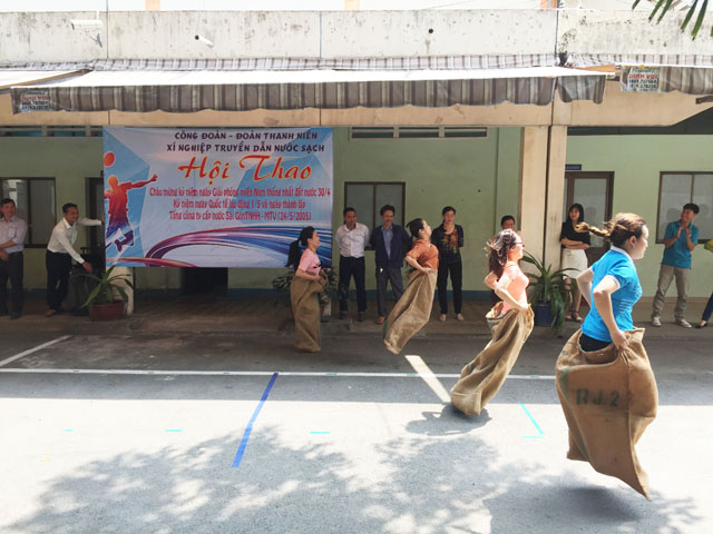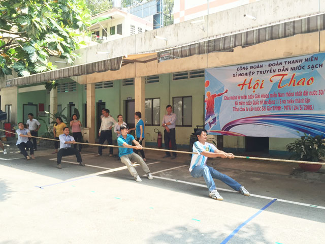 Nhằm chào mừng kỷ niệm ngày giải phóng miền Nam - thống nhất đất nước (30/04/1975 - 30/04/2018), ngày Quốc tế Lao động 01/05 và kỷ niệm 13 năm ngày thành lập Tổng Công ty Cấp nước Sài Gòn (24/05/2005 - 24/05/2018); Công đoàn - Đoàn Thanh niên Xí nghiệp Truyền dẫn nước sạch đã tổ chức Hội thao nội bộ Xí nghiệp với các môn: Kéo co, nhảy bao bố, cầu lông.